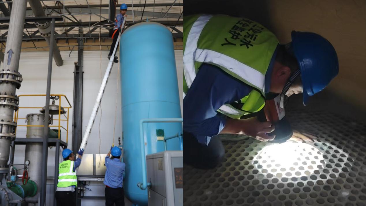 如火如荼的检修现场每天都上映着感人的画面。平凡的身影,忙碌的脚步,都是对岗位的负责,对工作的敬畏。紧张辛苦的7天大修落下帷幕,管道已疏通,各蓄水池池底淤泥,池壁结垢物也全部清理干净,系统已具备进水条件。本次停车检修任务圆满完成,这离不开停车前的精密部署和检修中的齐心协力。埋头苦干,默默奉献。以实际行动践行初心和使命,让吃苦耐劳的精神发光发亮,让生产平稳安全运行。
