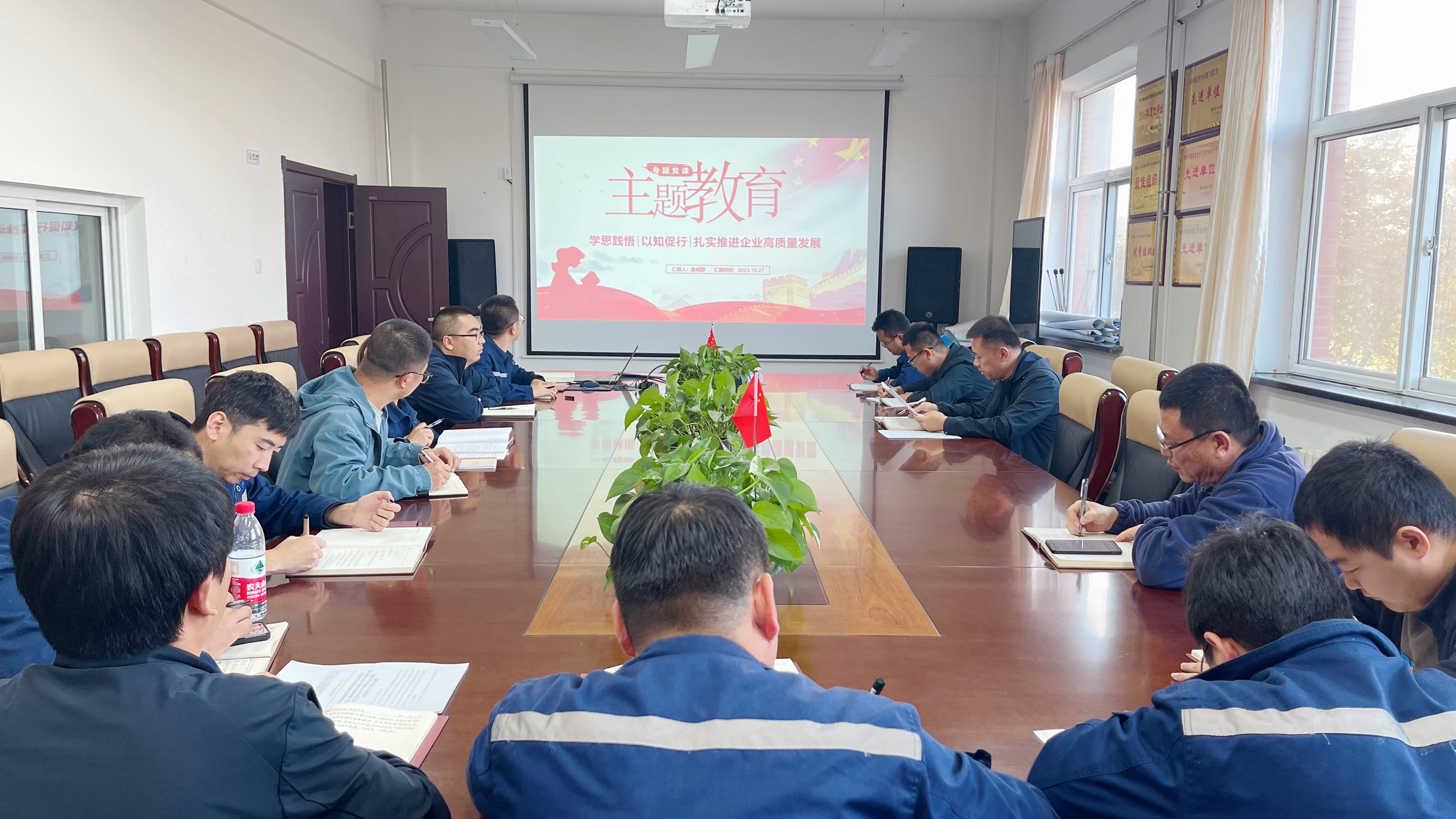 10月27日下午,生活污水处理公司支部开展了主题教育专题党课,书记鱼城郡为全体党员职工讲授了学习贯彻习近平新时代中国特色社会主义思想主题教育专题党课。生活污水处理公司支部全体成员参加。