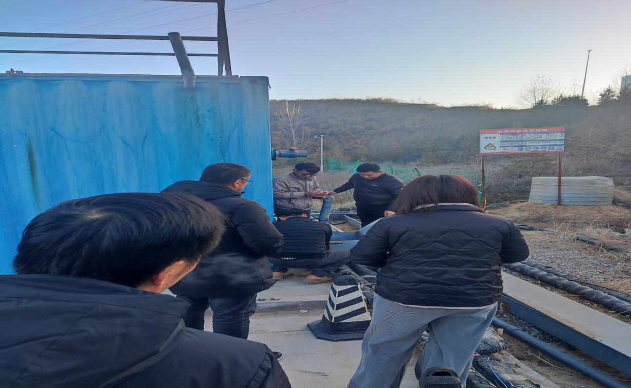 会前双方工作人员对渗渗液处理站的设施、设备、场界范围等相关实施进行了现场检查、核实、交接。现场交接完后全体人员在渗滤液处理站召开了安全会议。