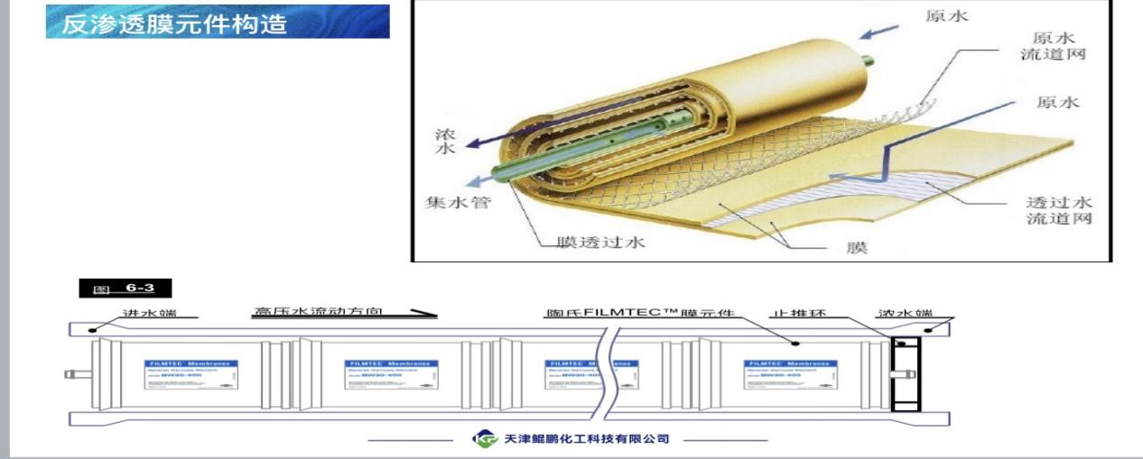 本次培训会特别邀请了药剂厂家的技术员李保成担任培训老师。结合我公司实际运行情况,培训老师详细讲解了膜系统的基本知识,包括反渗透原理、膜性能的影响因素、膜损伤与污染的原因、清洗方式与保存方法以及清洗过程中的注意事项等。为了让参训人员更直观地了解膜系统,培训老师还现场展示了膜元件构造图。