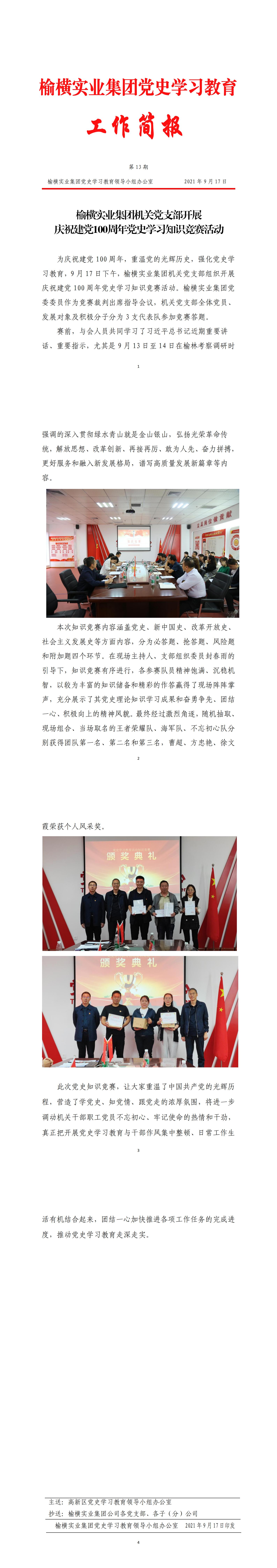 榆横实业集团机关党支部开展 庆祝建党100周年党史学习知识竞赛活动