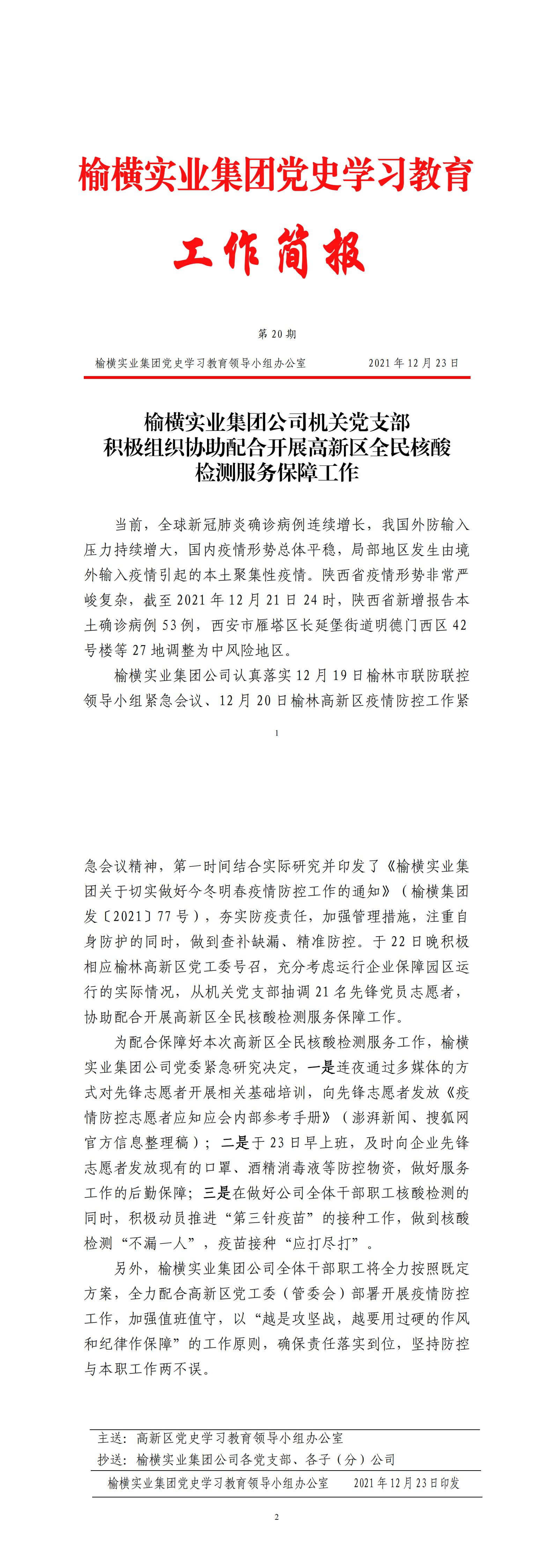 榆横实业集团公司机关党支部 积极组织协助配合开展高新区全民核酸 检测服务保障工作