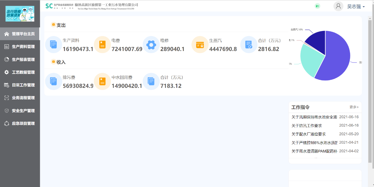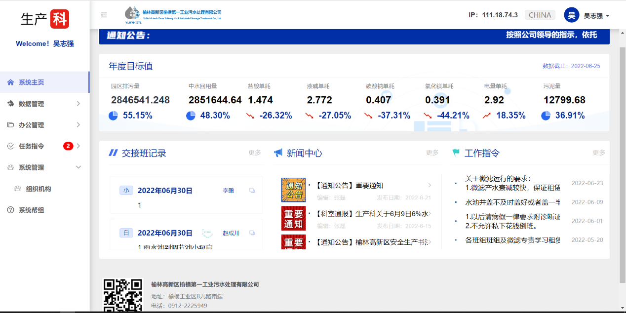 随着时间的推移和生产管理需求的不断提高,工业污水处理公司生产科网上办公管理平台1.0版本已经不能满足使用需求了。2021年,张磊重新开发搭建了生产科网上办公平台2.0版本。该平台实现了外网访问功能(网址:www.gyws0912.top:10000/yhws),只要有网络的地方,登陆账号就可以随时在线办公,涵盖了生产科的数据收集、统计和分析工作、科室信息的收集和发布工作、班组的药剂核算分析和关键工艺指标的统计管理工作、生产物资的出入库登记管理工作等等。目前,该管理平台基本实现了50%生产科科室管理的功能。